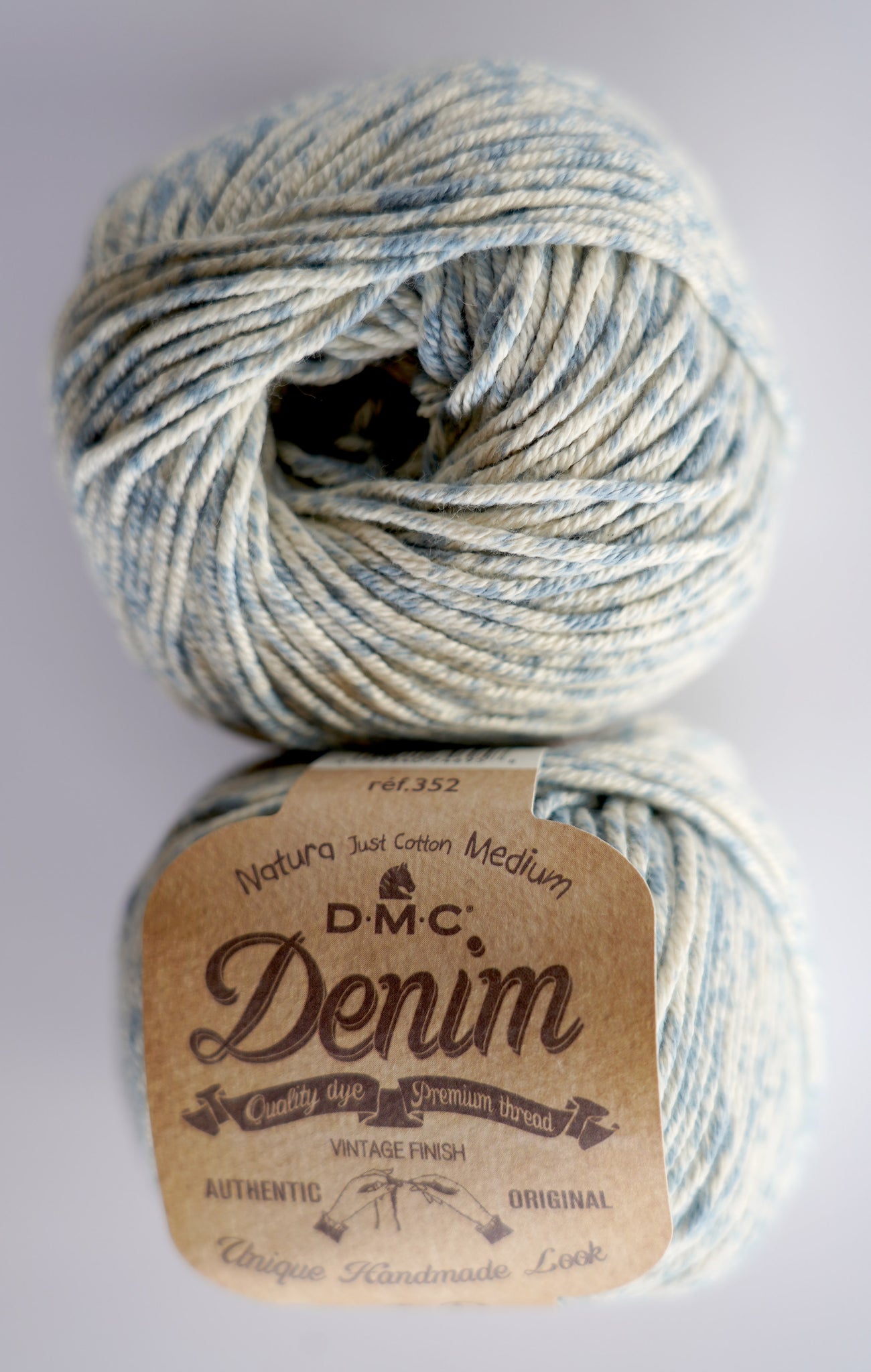Beautiful DMC Natura Medium Denim is a matte finish, 100% combed cotton that looks like your favorite pair of jeans and is just as soft to the touch. Strong and durable, Natura Denim has a pronounced twist that enhances the marled denim effect. Suited to an exceptionally wide variety of fashion and home dec projects and styles. Medium weight.